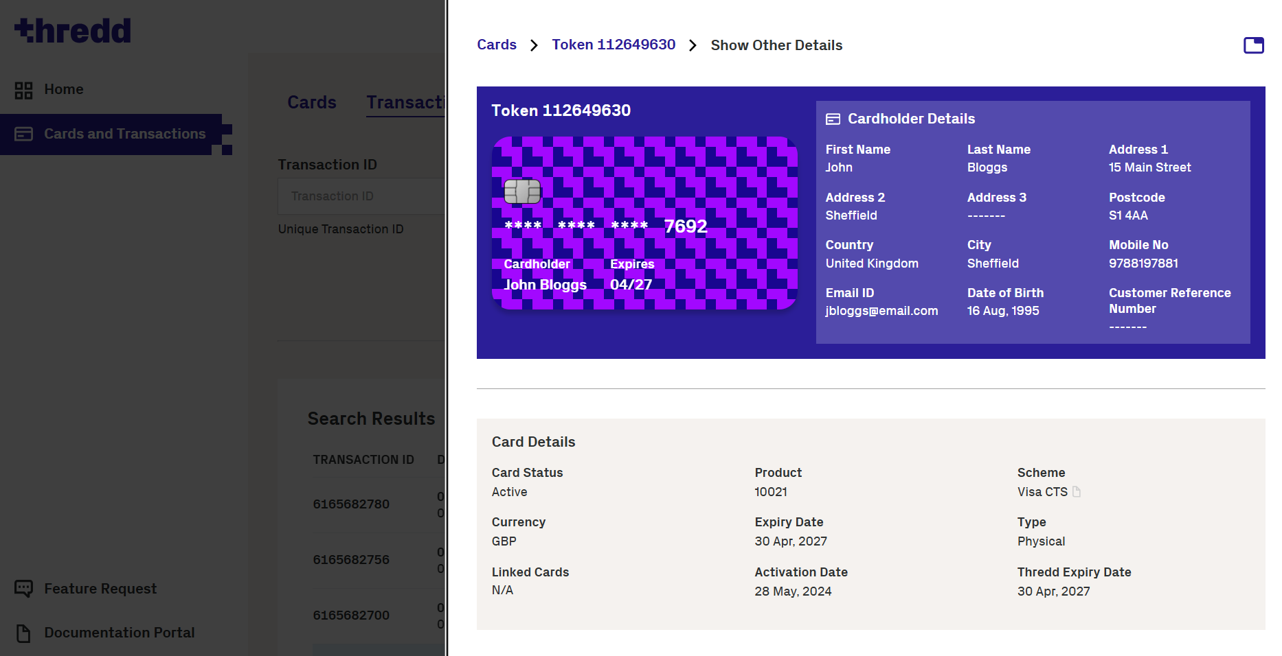 Figure 24: Card Details with all transactions displayed.
