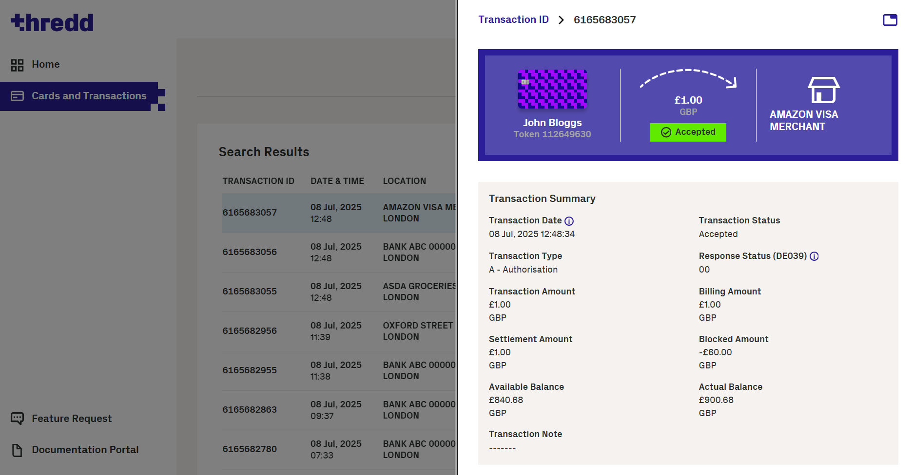 This option appears only if there is a matching transaction. If Thredd Portal: Cards and Transaction Management does not find a matching transaction, this option is not visible.