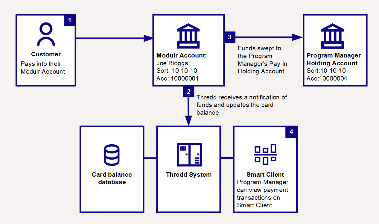 When we create a customer account on the Modulr system, the account is in your end-customer’s name, but customer balances are not stored in these accounts. Thredd acts as the system of record (i.e., Thredd accepts or declines card authorisations based on the balance record in the Thredd system). The card issuer holds the end customer funds – customers can make payments using their Modulr accounts.