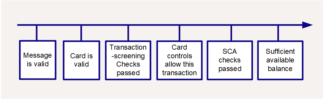If all checks are passed, then the transaction can be approved. Otherwise, the transaction is declined.