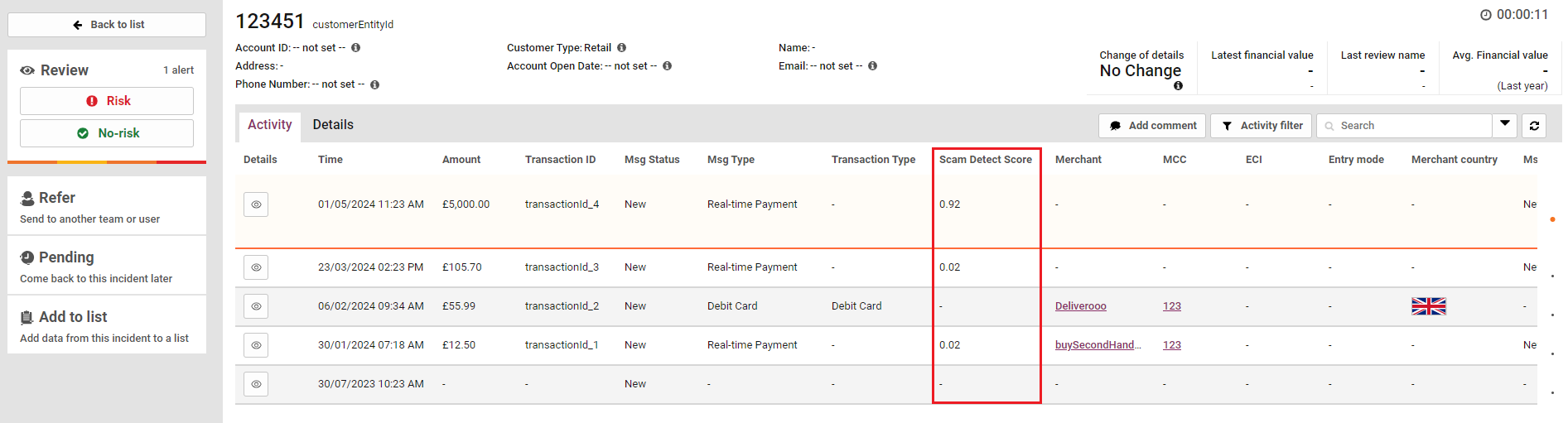 Figure: Scam Transaction Management on the Thredd Fraud Transaction Monitoring Portal